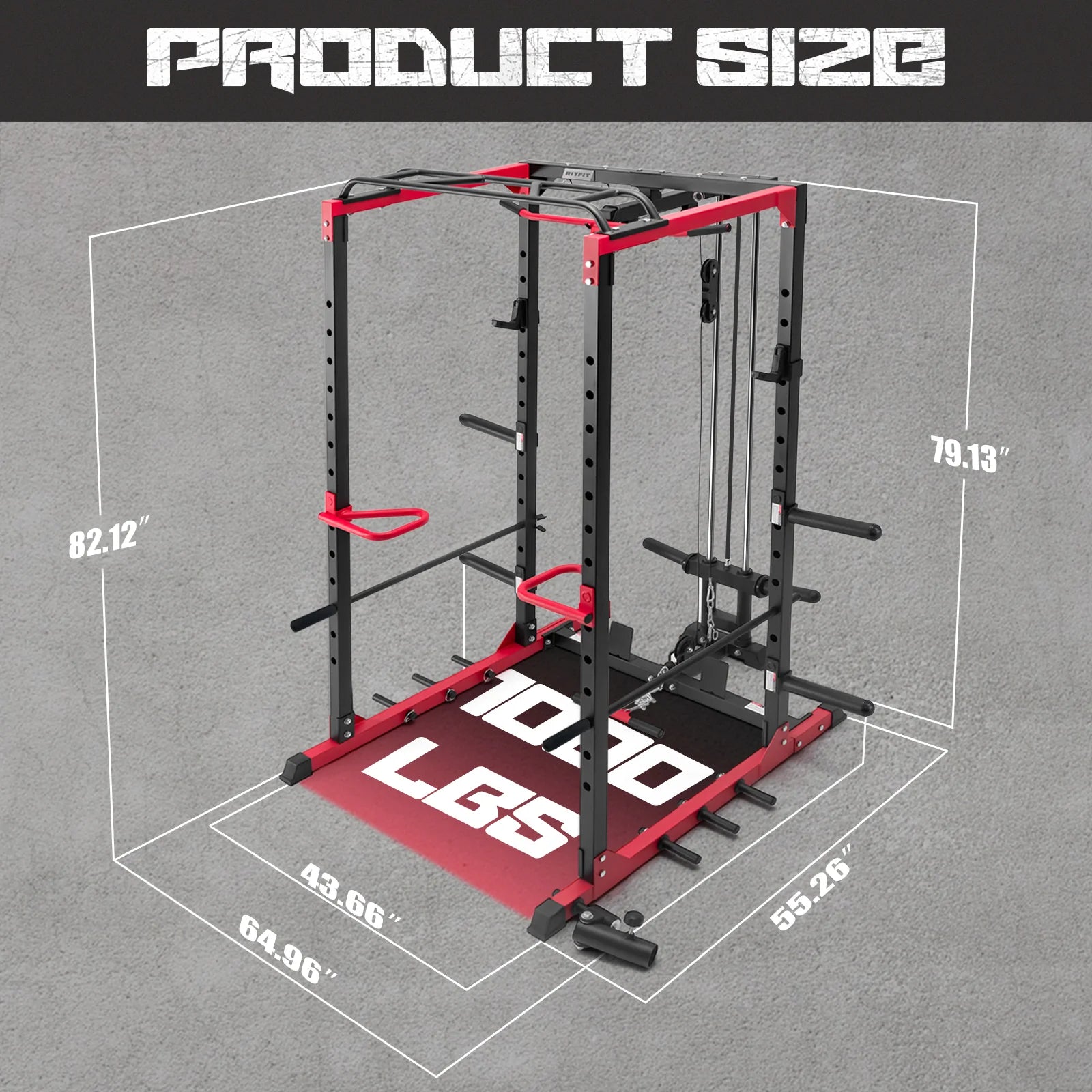 Built with 50mm x 50mm uprights and reinforced plates, this squat rack offers stability and a 1000 lbs weight capacity. Its compact dimensions (43.66"L x 55.26"W x 82.12"H) feature multiple 1" holes for versatile setups.